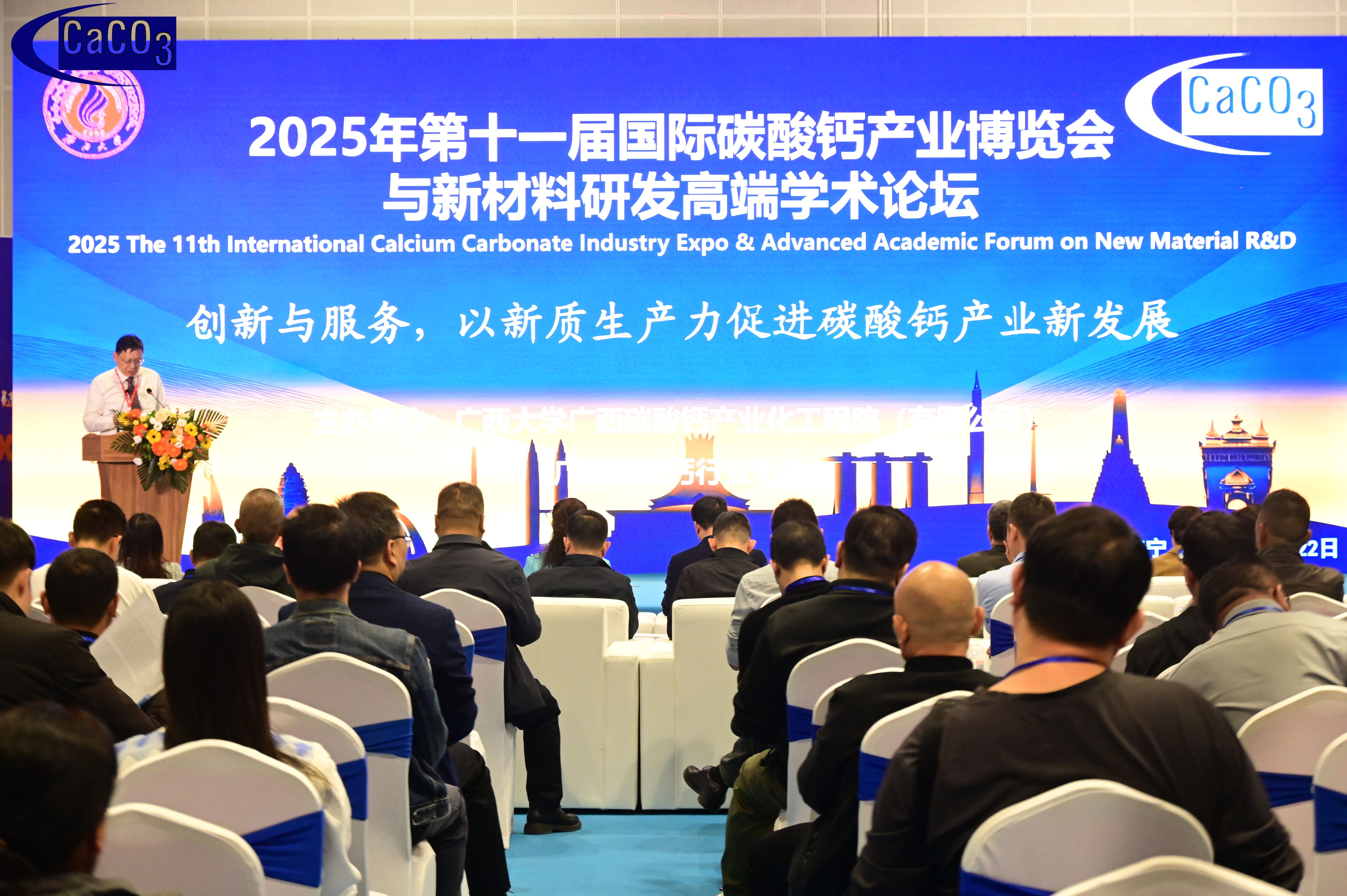 From November 22 to 23, the 11th International Calcium Carbonate Industry Expo and High-end Academic Forum on New Materials Research and Development 2025 was held at Nanning International Convention and Exhibition Center. The event was jointly organized by Guangxi Calcium Carbonate Industrialization Engineering Institute (Co., Ltd.) and Guangxi Calcium Carbonate Industry Association, with support from the United Front Work Department of the Guangxi Zhuang Autonomous Region Committee of the Communist Party of China, the Guangxi Federation of Industry and Commerce, the Department of Industry and Information Technology of Guangxi Zhuang Autonomous Region, the Development and Reform Commission of Guangxi Zhuang Autonomous Region, Guangxi University,the Guangxi Industrial Promotion, and theSmall and Medium Enterprise Service Center. Chen Jingyu, theSecretary-General of the Guangxi Committee of the China National Democratic Construction Associationand theSecond-level Inspectorand Yao Zuofang, Standing Committee Member of the Party Committee of Guangxi University,attended the opening ceremony and delivered speeches.