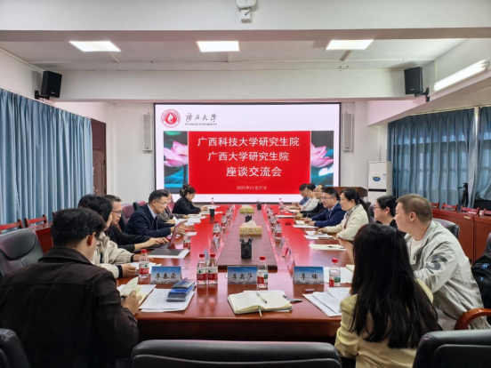廖志高介绍了广西科技大学研究生教育的发展概况以及本次调研的主要目的。他表示,感谢广西大学研究生院毫无保留地热情分享在导师队伍建设、研究生招生、卓越工程师创新研究院建设、学科竞赛管理、研究生教育数字化建设等方面的宝贵经验、先进理念和创新做法,希望以此次交流为契机,通过深入学习广西大学研究生教育工作的经验做法,增强两校合作交流,为广西科技大学研究生教育发展增添新动力。