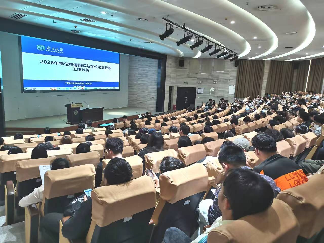 会上,陈宁江做了关于研究生学位申请质量保障工作的报告,介绍相关文件规定、论文质量现状、论文规范要求、质量保障措施等内容四个方面着手,提出工作要求。研究生院学位办曹莉老师重点解读学校学位管理文件的变化,对2026年学位申请工作要点进行说明。张慧老师结合学位论文的新修订撰写模板、评价案例,对学位论文撰写规范进行详细解读。