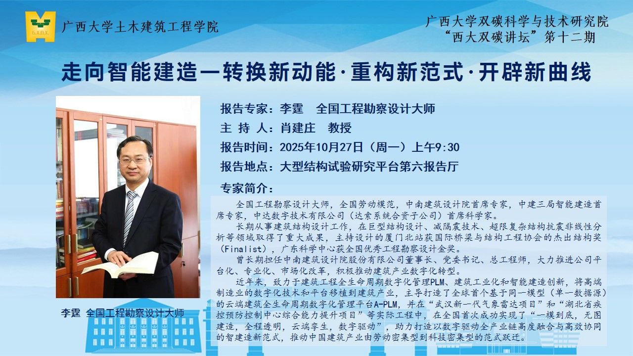 土木建筑工程学院、广西大学双碳科学与技术研究院学术报告:走向智能建造—转换新动能·重构新范式·开辟新曲线