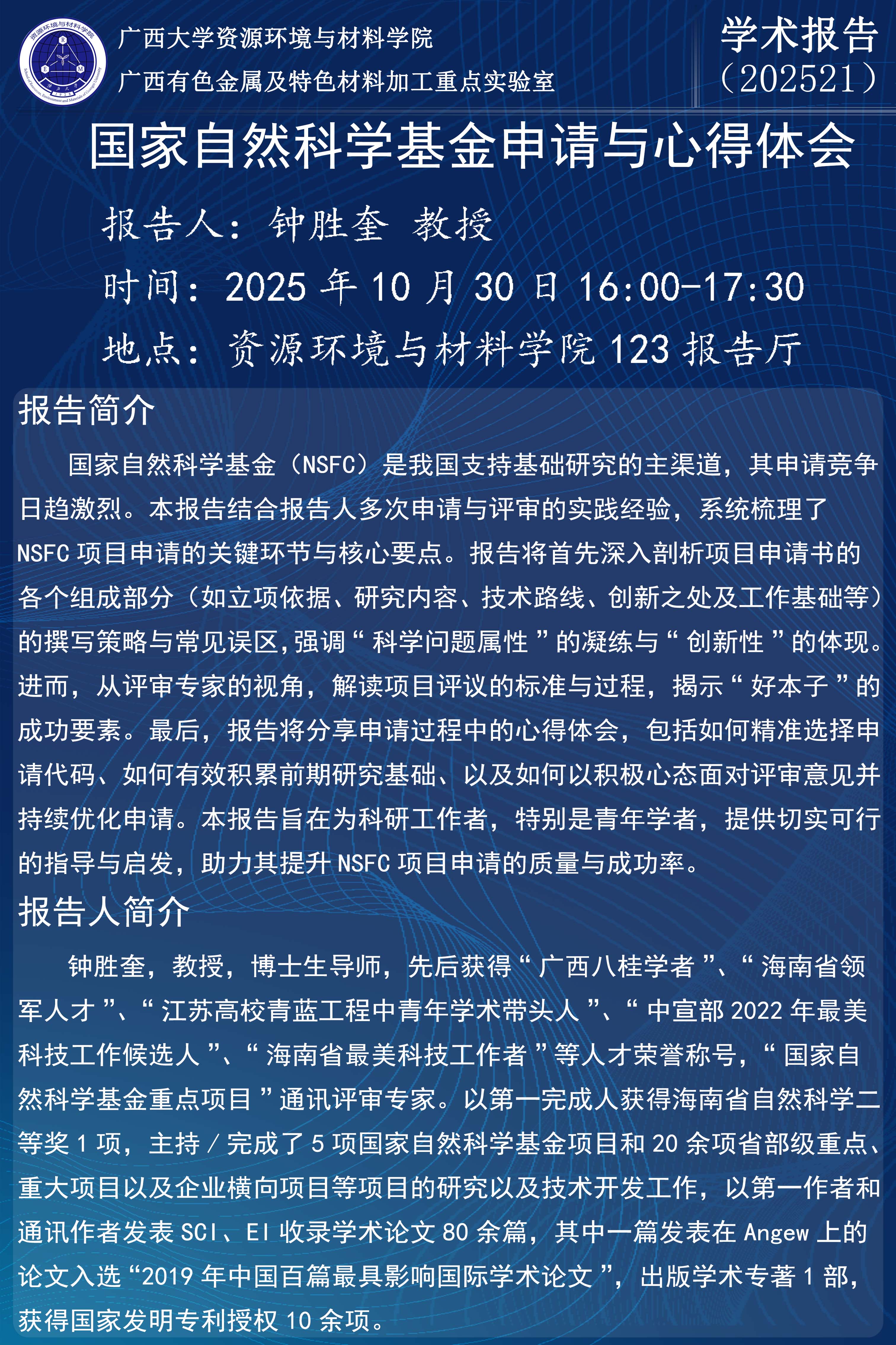 资源环境与材料学院学术报告:国家自然科学基金申请与心得体会