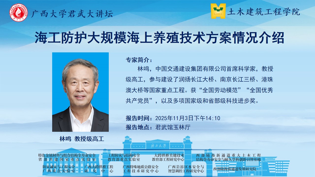 君武大讲坛、土木建筑工程学院学术报告:海工防护大规模海上养殖技术方案情况介绍 ...