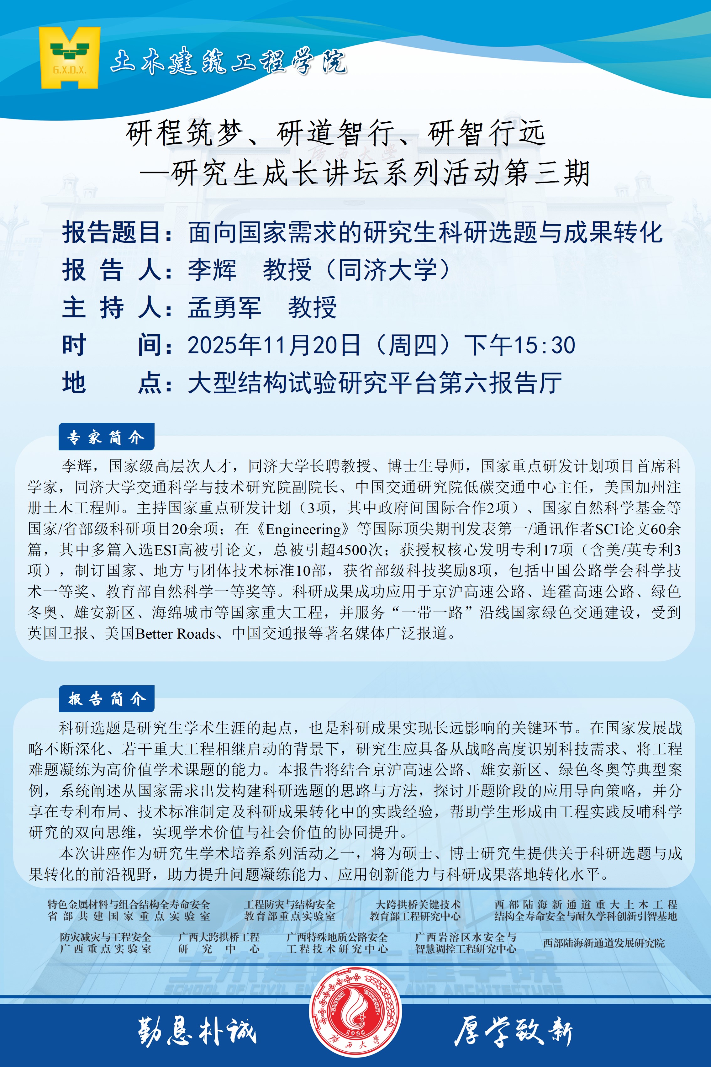 土木建筑工程学院学术报告:面向国家需求的研究生科研选题与成果转化