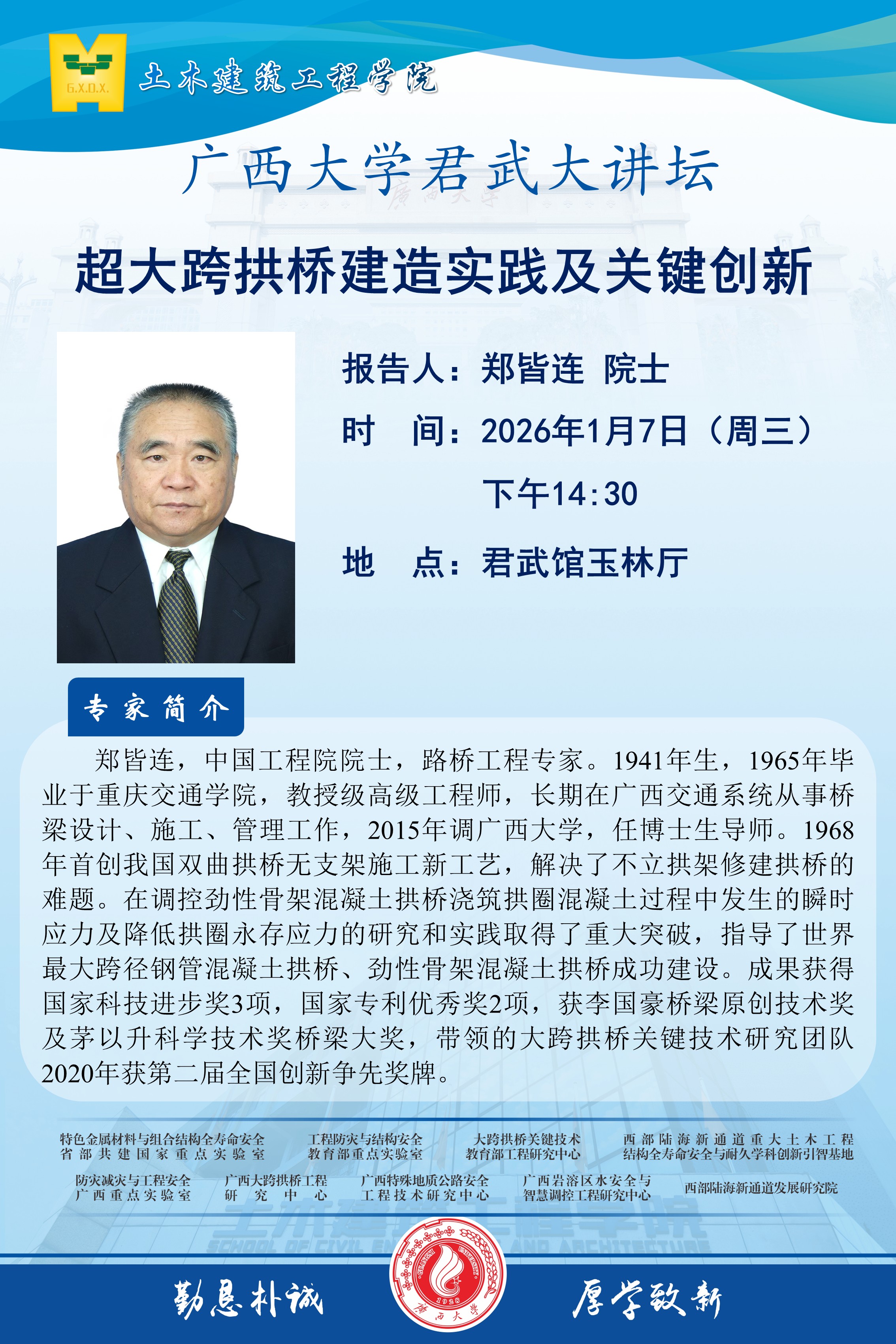 君武大讲坛、土木建筑工程学院学术报告:超大跨拱桥建造实践及关键创新 ...
