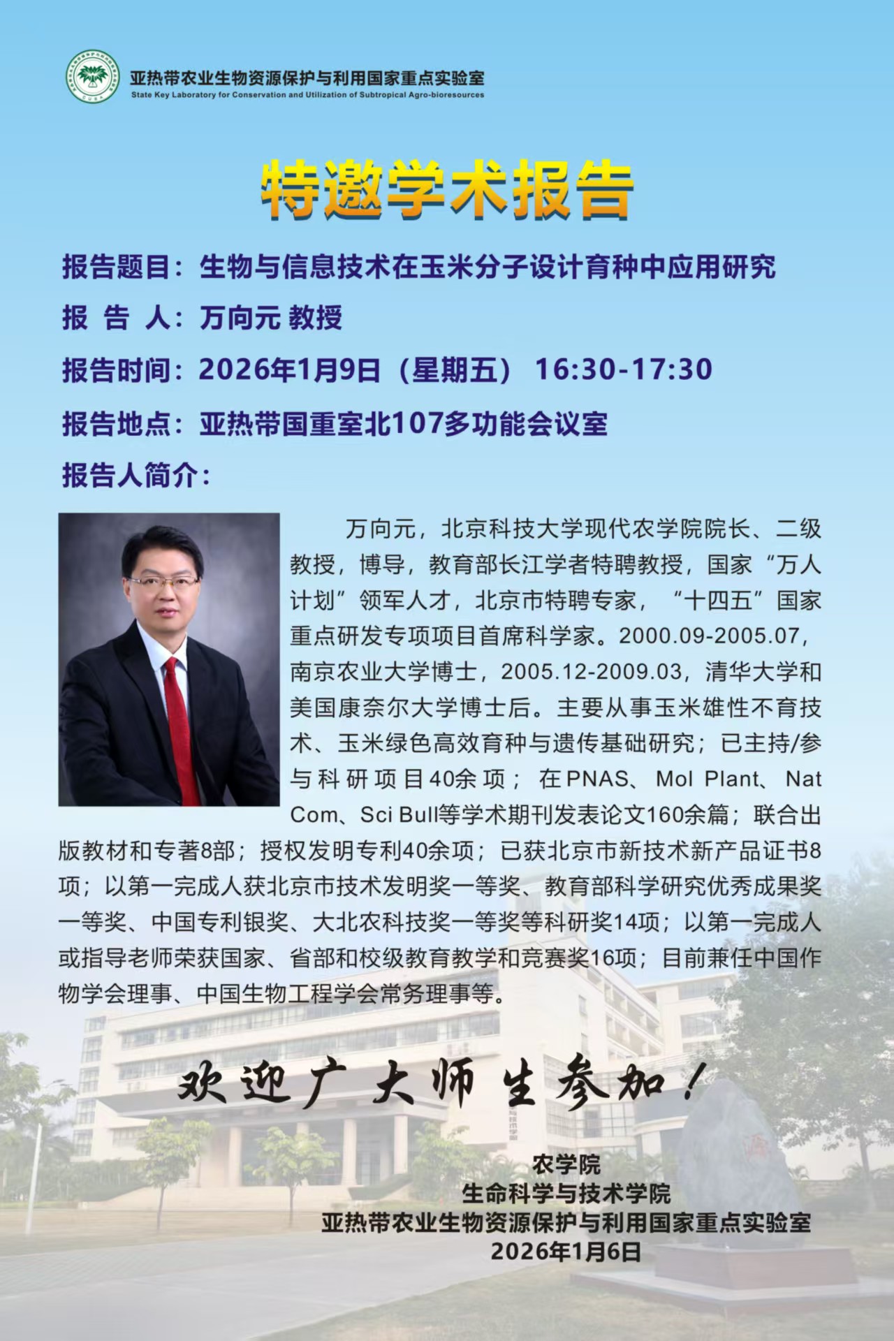 亚热带国重室特邀学术报告:生物与信息技术在玉米分子设计育种中应用研究