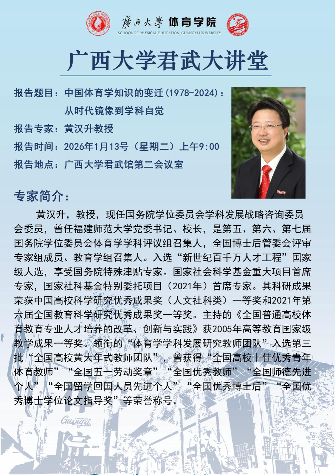 君武大讲坛:中国体育学知识的变迁(1978-2024): 从时代镜像到学科自觉