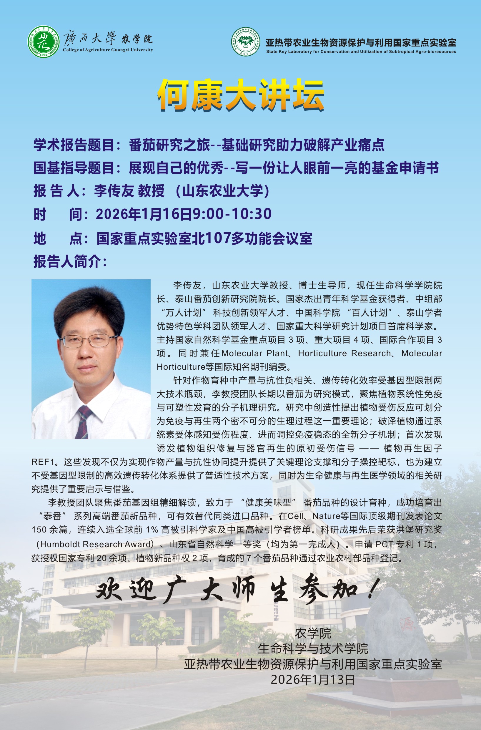 农学院何康大讲坛:有关番茄研究的学术报告暨国基申请和撰写指导座谈会 ...