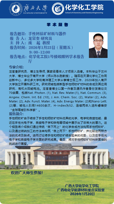 化学化工学院学术报告:手性钙钛矿材料与器件