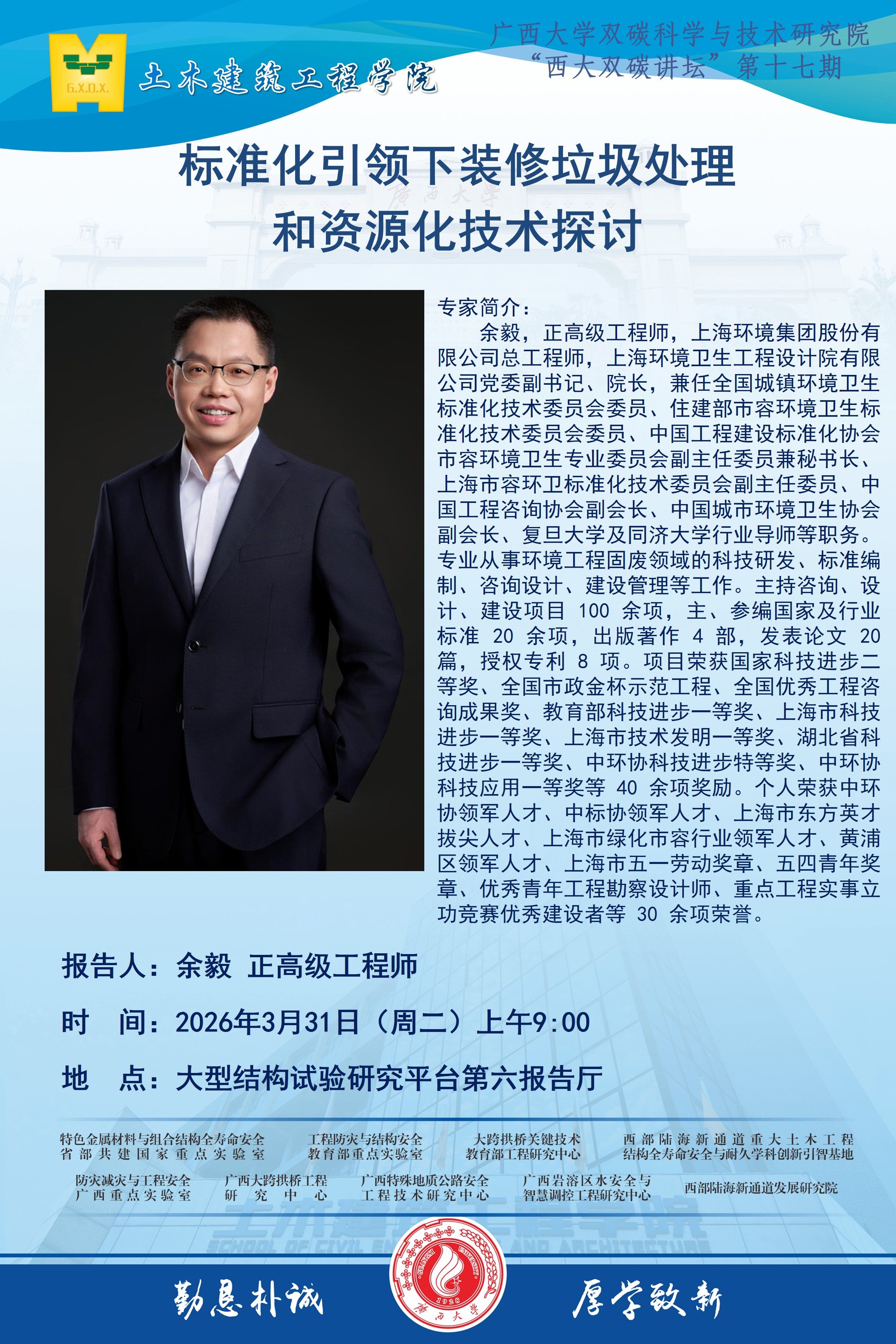 土木建筑工程学院、广西大学双碳科学与技术研究院学术报告:标准化引领下装修垃圾处理和资源化技术探讨