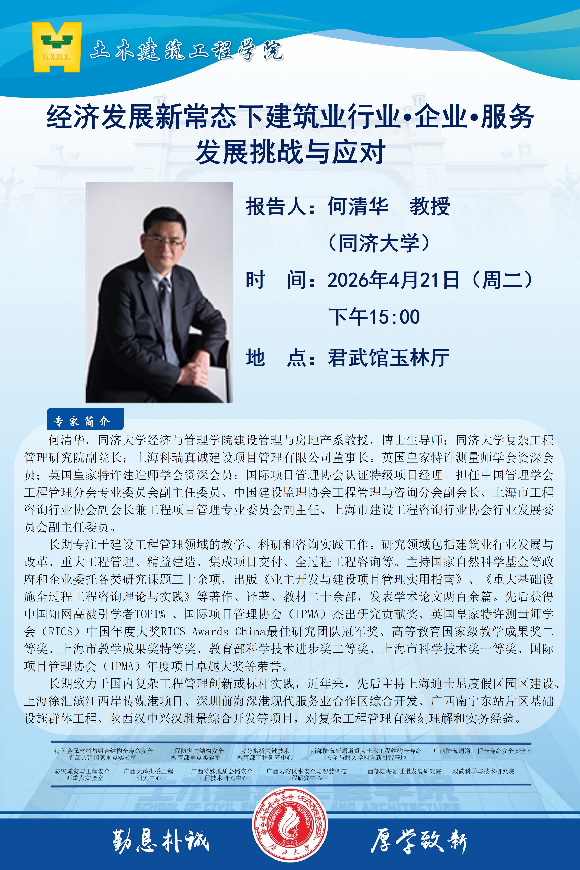 土木建筑工程学院学术报告:经济发展新常态下建筑业行业•企业•服务发展挑战与应对